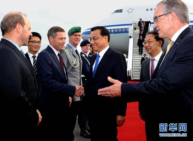 国务院总理李克强抵达柏林开始对德国进行正式访问。德国政府高级官员到机场迎接。 新华社记者 饶爱民 摄