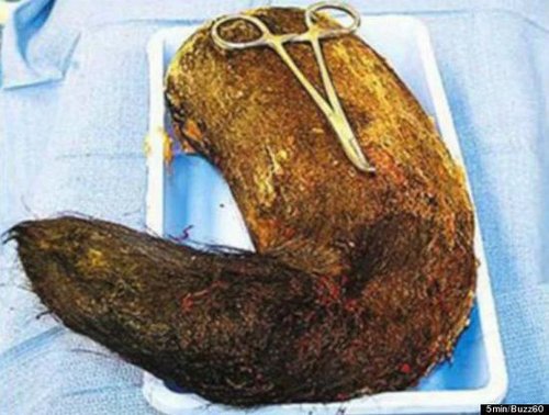 无独有偶,2012年10月,印度医生从一名19岁少女的胃里取出重约2公斤的发球。和艾比芮一样,该女子也喜欢吃头发,而且喜欢混在牛奶里面。(环球时报-环球网)