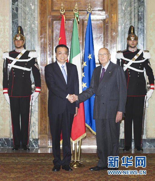 10月14日,国务院总理李克强在罗马总统府会见意大利总统纳波利塔诺。