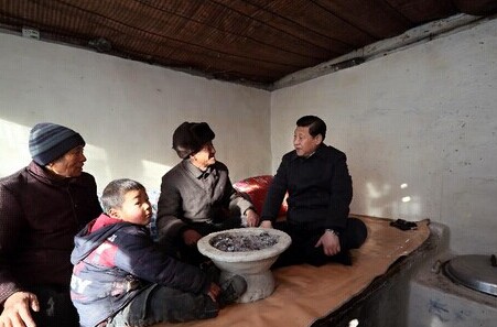 2012年12月29日,十八大闭幕一个月后,习近平冒着零下十几摄氏度的严寒,驱车300多公里来到地处太行山深处的河北省阜平县,看望慰问困难群众,考察扶贫开发工作。