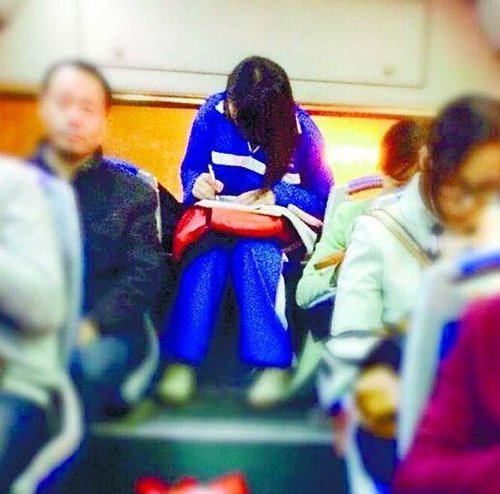 美女学生公交做作业走红 专家提醒公交上不宜做6件事
