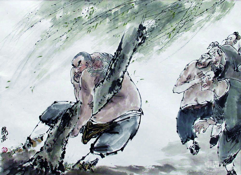 蒋意作品说明:《水浒》之鲁智深倒拔垂杨柳