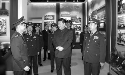 习近平来到军史馆,在“驻澳精神”主题浮雕前,在一幅幅图片、一件件实物前不时驻足观看,对部队建设发展取得的成绩给予充分肯定。