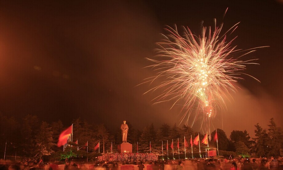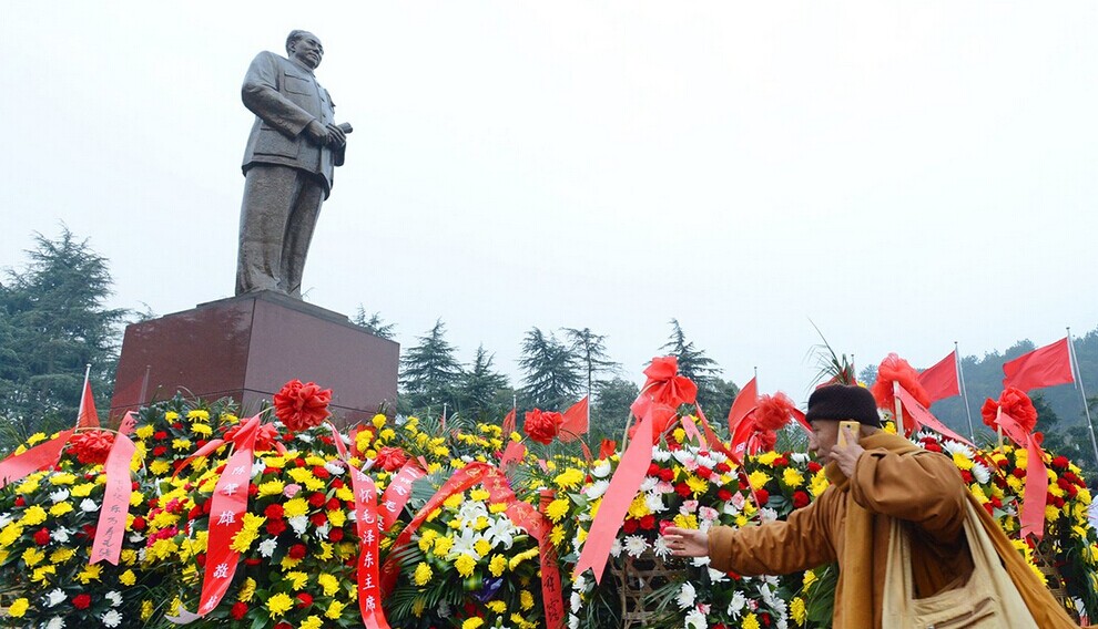 2014年12月26日零点,湖南韶山毛泽东广场近10万各地民众组织祭拜韶山毛泽东铜像,纪念毛泽东诞辰121周年。