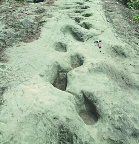 2009年,自贡市富顺县龙贯山一山坡处惊现了19个“犀牛的脚印”。