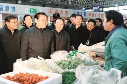 12月31日,省委书记王儒林在太原市供销社果品茶叶副食总公司的北批发部菜市场,了解摊主经营情况。