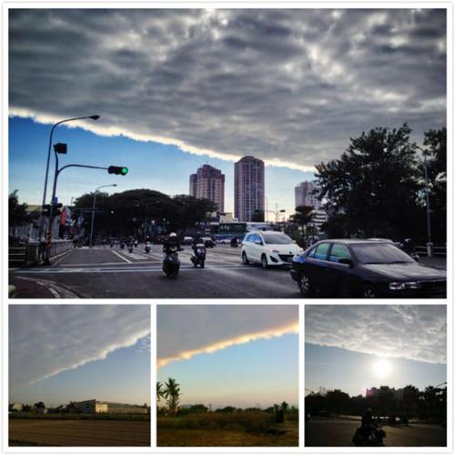 6日清晨,台湾高雄、屏东地区的天空出现一条分明的大线条,将天空划分为二,引起许多人称奇。
