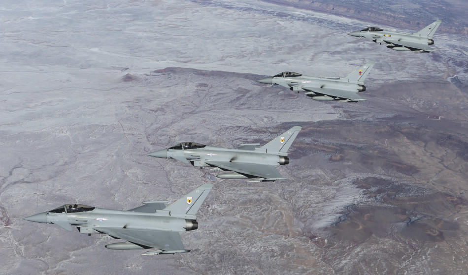 2015年度红旗军演将于3月份举行,英国皇家空军近日已派遣首批台风战机飞赴美国参加军演。