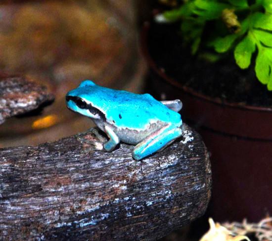 日本山梨县北杜市展出浅蓝色青蛙。报道指出,青蛙通常是绿色,10万只青蛙中有可能仅1只是蓝色,非常少见。