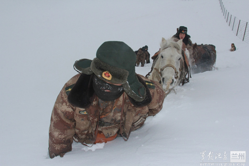 近期的降雪早已把巡逻路掩埋,很多地方积雪达到1米多厚,军马也不敢前行,巡逻分队在连长王志龙的带领下踏出一条路来,牵着马前行,出发不久,军马便喘着粗气,马鼻子已经结了冰渣渣,官兵的面罩上也是一层冰霜。