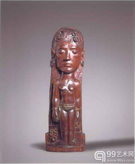 去年10月,贝耶勒基金会美术馆总监山姆•凯勒(Sam Keller)在弗雷兹大师展上发现了这件作品,当时其被静静的安放在参展的伦敦Lefevre Fine Art画廊中。据说,这件令人过目难忘的雕像描绘的是马克萨斯天主教主教约瑟夫•马丁(Joseph Martin)的仆人,高更与她有性关系。遗憾的是,这位主教的雕像《Père Paillard》(1902)目前藏于华盛顿国家美术馆,未能与他的仆人一同出展。