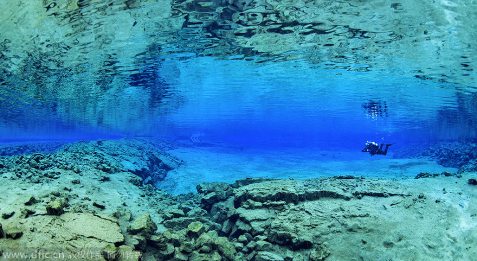 法国海洋生物学家Mathieu Foulquie近日前往冰岛潜水探险,于辛格维利尔湖水下拍摄Silfra大裂谷的绝美景象。这里水质清澈明净,是景色优美的潜水天堂,由于冰岛Silfra大裂谷处于北美板块和亚欧板块交界处,就犹如地球上一道美丽的“伤疤”,令无数人神往。