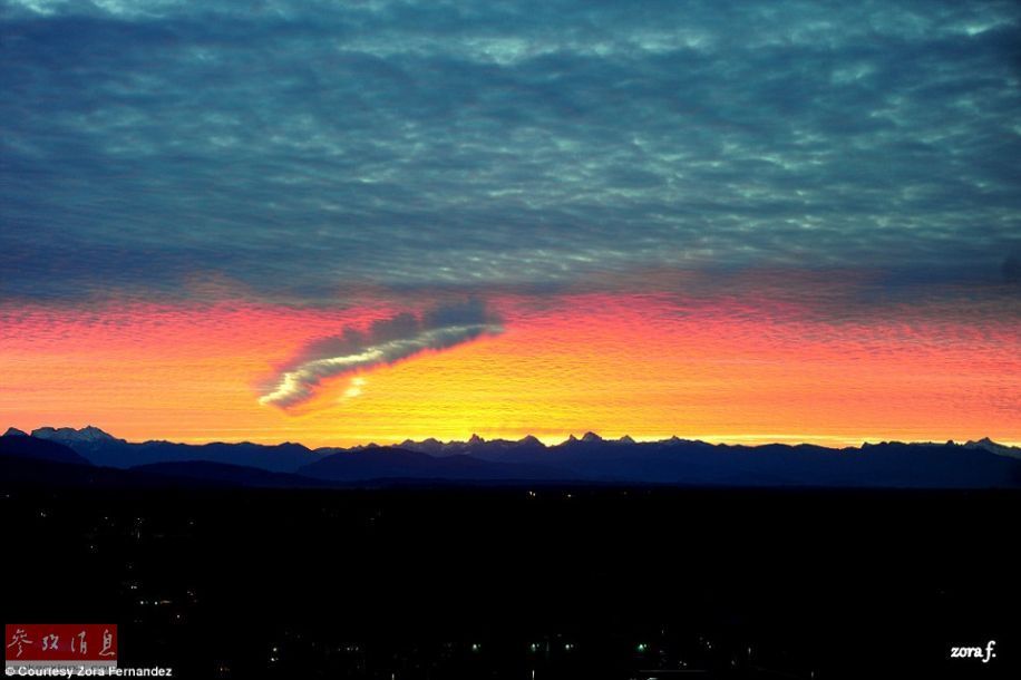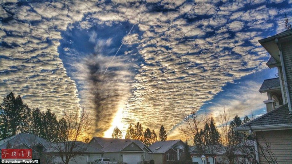 近日华盛顿和英属哥伦比亚天空出现令人瞠目结舌的奇观穿洞云景象。