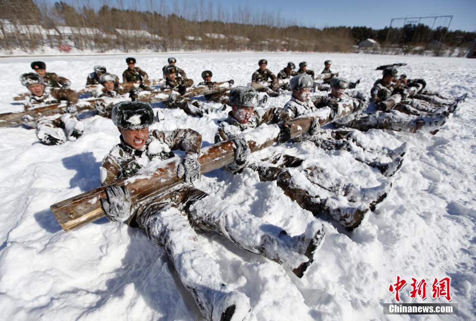 黑龙江黑河市,享誉有“老虎连”之称的黑龙江省军区某边防团机动步兵连官兵冒着-15℃严寒气温组织开展抗圆木、托举轮胎等科目训练,血性十足。