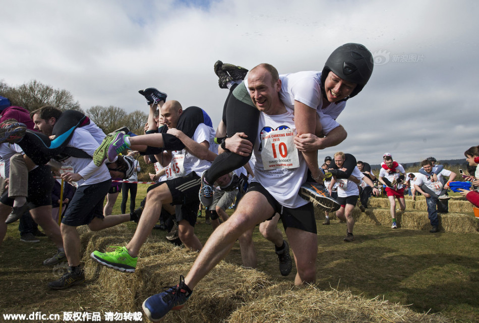 3月8日,英国多尔金,2015英国“背媳妇”障碍赛举行。