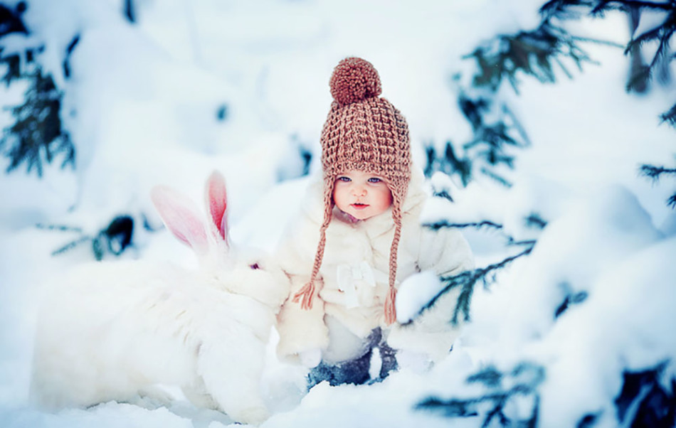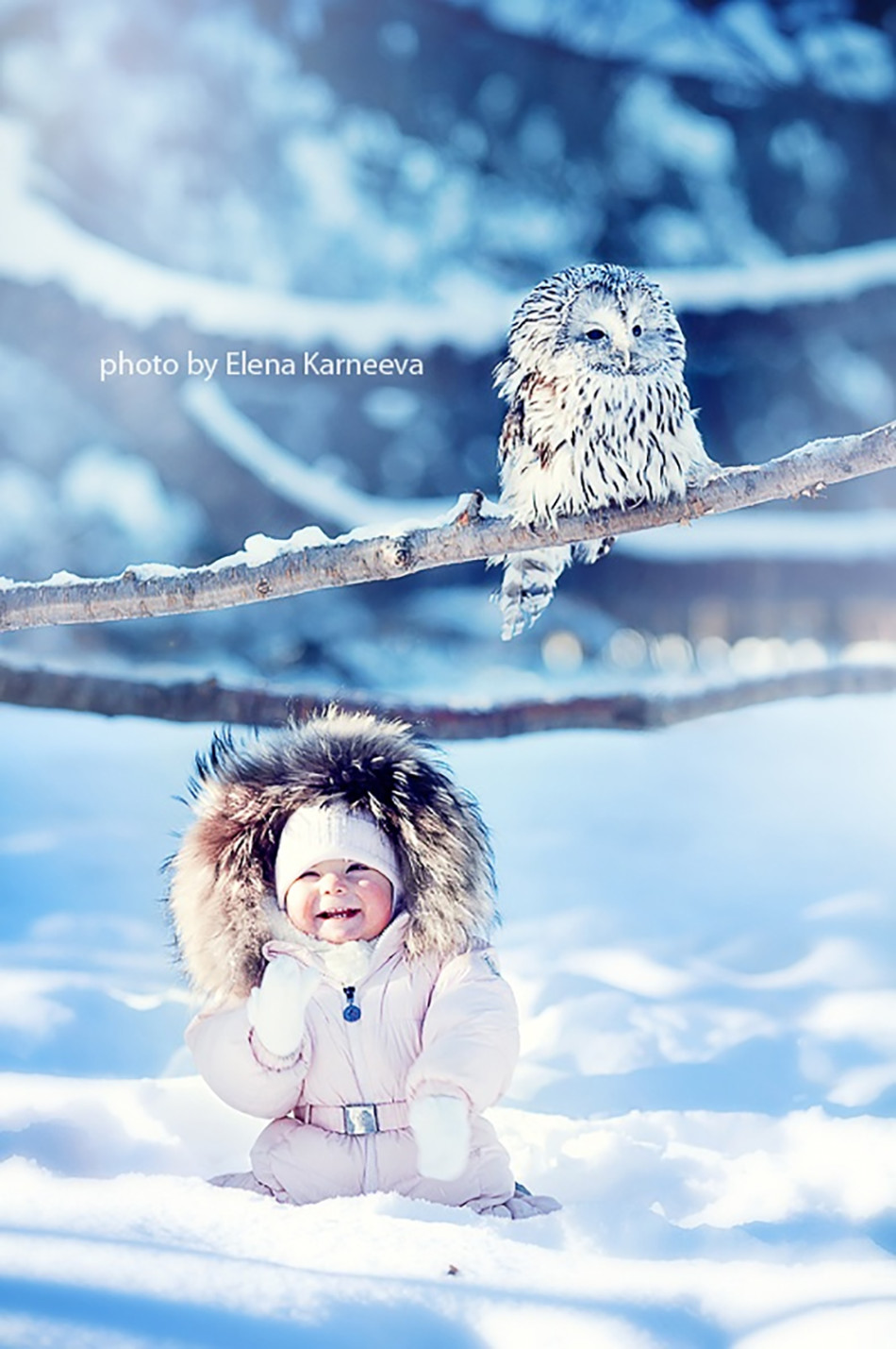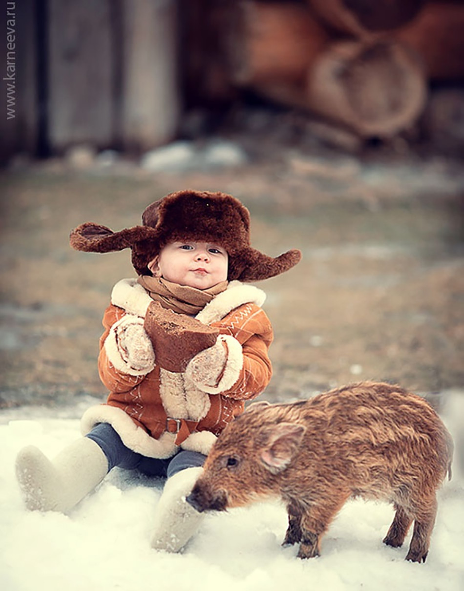 Elena Karneeva善于捕捉那些令人温暖的瞬间,在她的摄影中,几乎随处都可以看到动物的身影,这些动物从兔子到狐狸,甚至熊都有,而这些动物在那些懵懂的儿童面前,也放下了心中的恐惧与戒备,其中的情感虽然简单,但却足以感染任何观众。