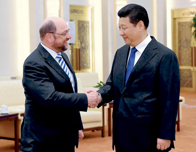 3月16日国家主席习近平16日下午在人民大会堂会见欧洲议会议长舒尔茨。