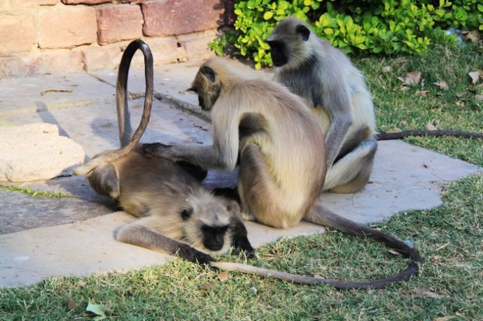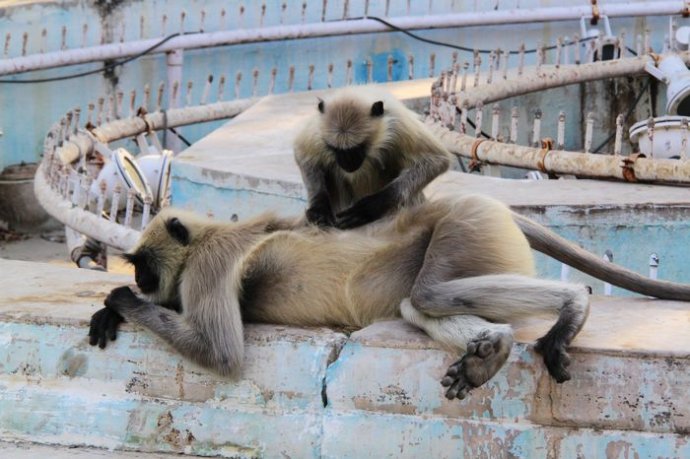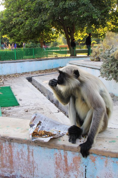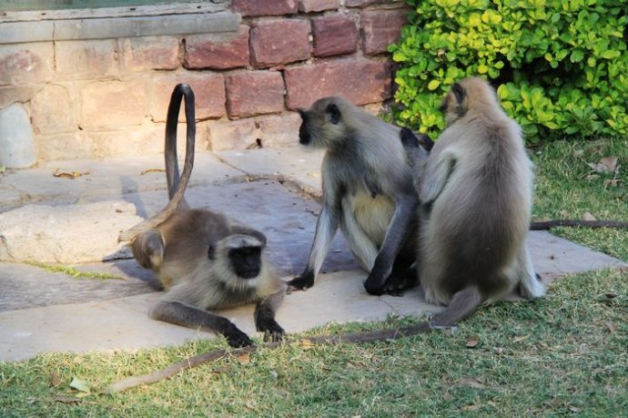 这是在印度一个公园看到的猴子场景,不是在笼子里,就是在路边、在栏杆边上,猴子们快活地玩乐着!