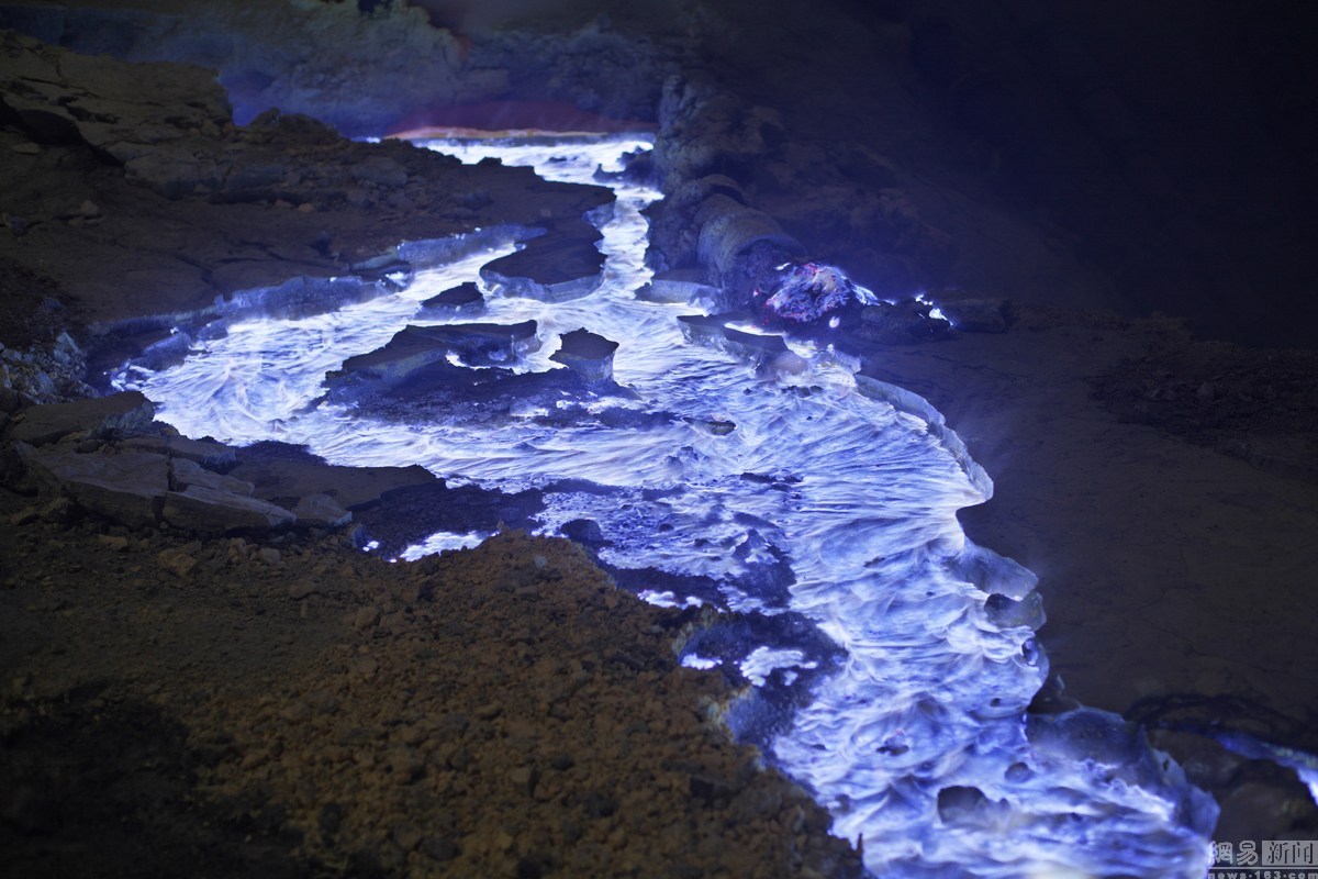 近日,来自德国的业余摄影师Martin Rietze在印尼东部的卡瓦伊真火山就拍摄到了罕见的一幕,大量蓝色岩浆流出地面。