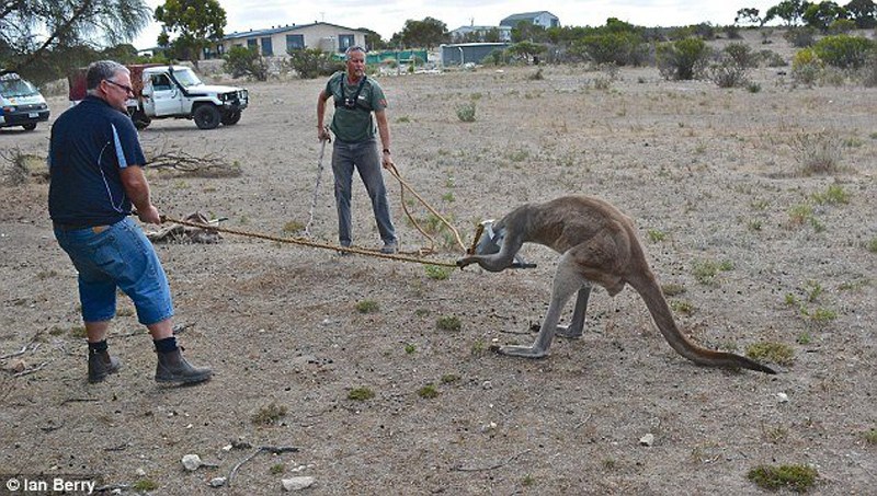 据看到的人们判断,袋鼠应该是喝水的时候将脑袋伸进去而未能拔出卡在其中。