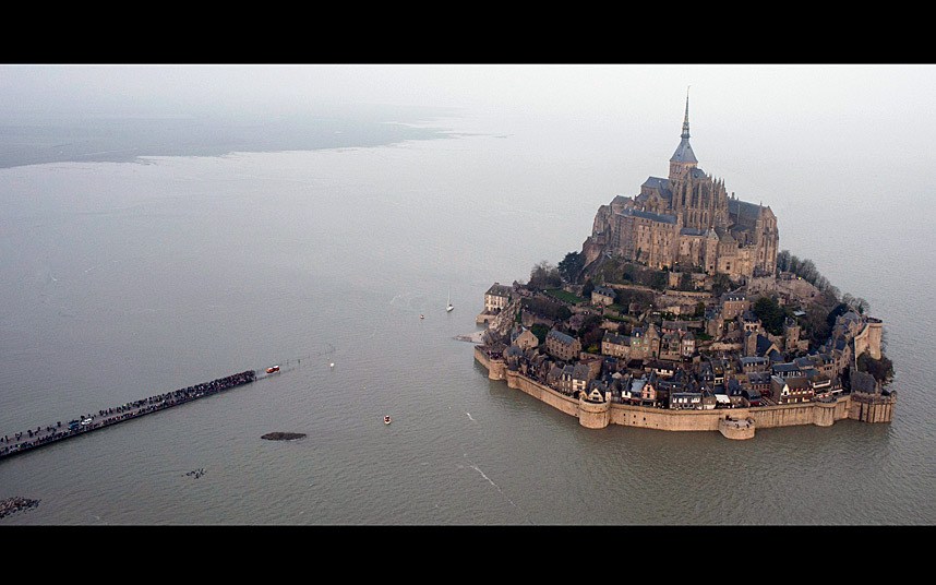 近日,欧洲出现日蚀,影响潮汐,海水大涨带来新景观,超级潮汐现象一般18年才有一次。例如这座水中城堡。众多观光客和摄影者齐聚于此,拍摄这一奇景。
