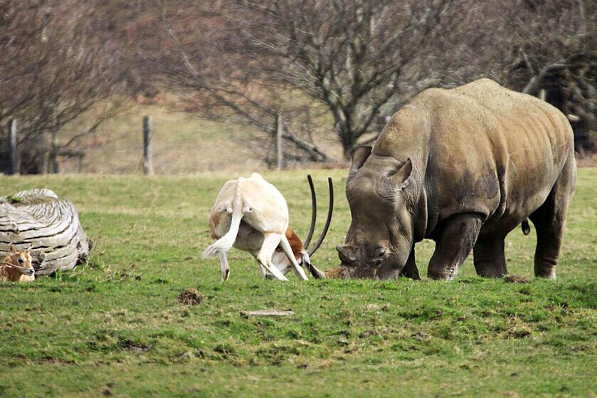 近日,英国的郎利特野生公园(Longleat Safari Park)里,一只母性大发的弯刀羚羊为保护自己幼崽不惧危险,敢于犀牛对角而冲,画面着实令人惊叹。