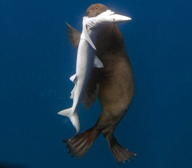 海豹主要以虾、蟹等底栖鱼类为食,而蓝鲨和它们的体型几乎一样大,因此袭击蓝鲨的这种反常行为令人匪夷所思。