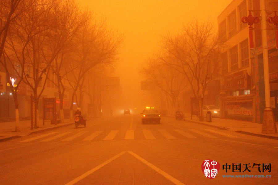 3月31日,甘肃敦煌市遭遇沙尘暴袭击,从早上6点开始,刮起了6级大风,大风卷起黄沙遮天蔽日,市区能见度不足50米,早上9点30分,能见度已经下降到不足20米。空气中弥漫着呛人的沙土味。