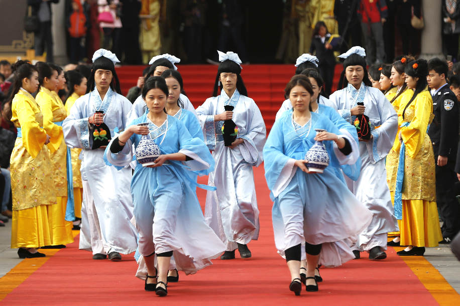 4月5日,山西洪洞大槐树万人祭祖广场聚集了来自全国各地大槐树移民后裔代表,虔诚祭奠大槐树移民先祖。本届寻根祭祖大典将国家级非物质文化遗产“大槐树祭祖习俗”和洪洞当地流传下来的民祭仪式进行了融合。