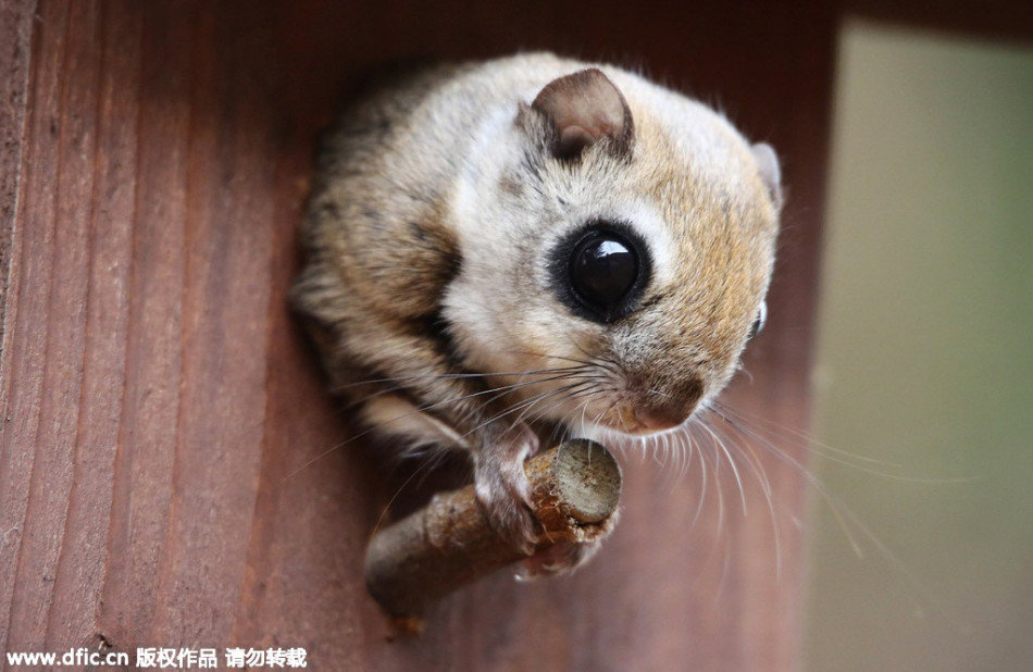 近日,在韩国俗离山国立公园,一只飞鼠从人工巢往外探头时被摄像机捕捉到。