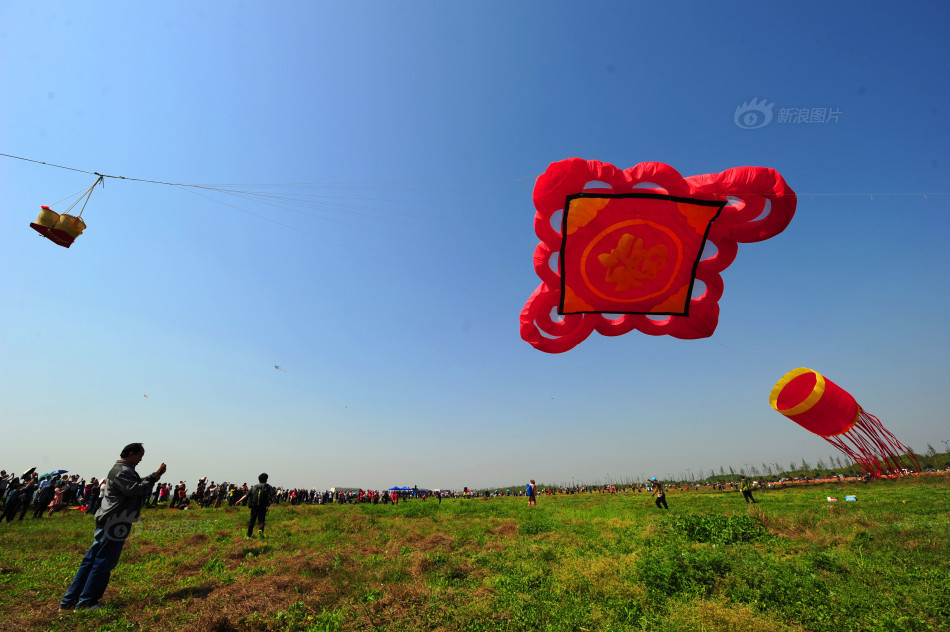 9位风筝放飞高手和50多名志愿者一齐将大风筝进行放飞。该风筝为目前为世界最大软体风筝,耗时4个月制作,重1000余斤,面积超过2600平米。