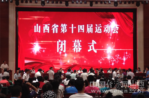 8月18日,经过10天的紧张比赛,山西省第十四届运动会闭幕式在省城举行。各市代表团以及运动员、教练员、裁判员代表出席了闭幕式。副省长、组委会主任张复明出席闭幕式,为获奖代表团颁奖,并宣布运动会闭幕。