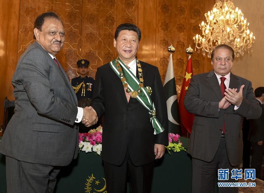 日前,国家主席习近平在伊斯兰堡接受巴基斯坦总统侯赛因授予的“巴基斯坦勋章”。并在巴基斯坦议会发表题为《构建中巴命运共同体 开辟合作共赢新征程》的重要演讲。