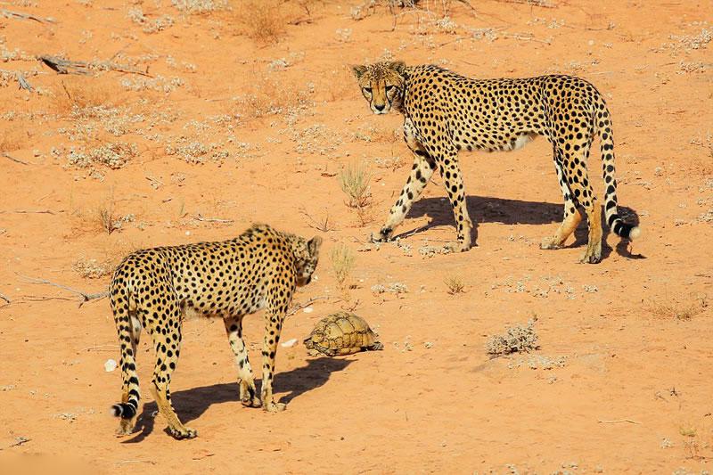 乌龟曾在赛跑中赢过野兔,如今,它竟要对付两只印度豹。