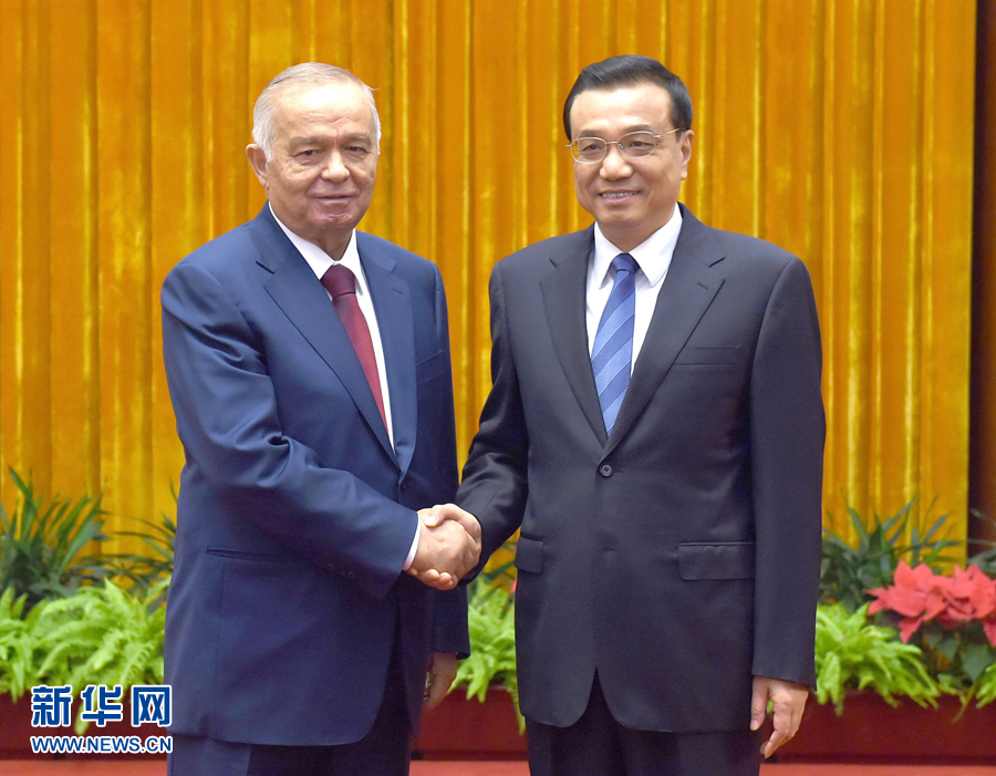 国务院总理李克强20日上午在人民大会堂会见乌兹别克斯坦总统卡里莫夫