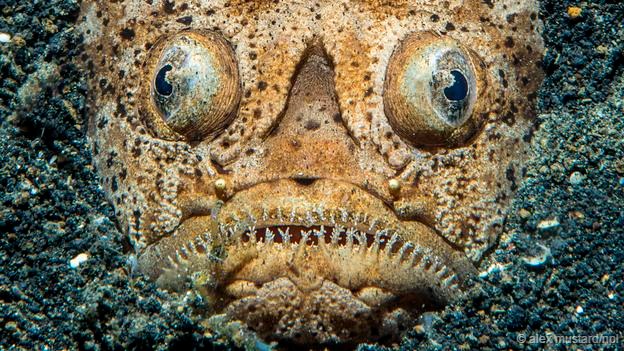 这是一条胆星鱼科䲢属的鱼类,发现于印度尼西亚北苏拉威西省的比通海域。它们是埋伏捕猎的鱼类,以章鱼和鱿鱼等为食。胆星鱼的眼睛位于头部上方。它们还具有电击的能力,能产生高达50伏的电压。