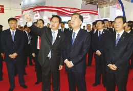 5月18日上午,第九届中国中部投资贸易博览会开幕仪式前,中共中央政治局委员、国务院副总理汪洋到武汉国际博览中心巡馆并参观山西展区,省长李小鹏、副省长王一新和其他省部领导陪同参观。