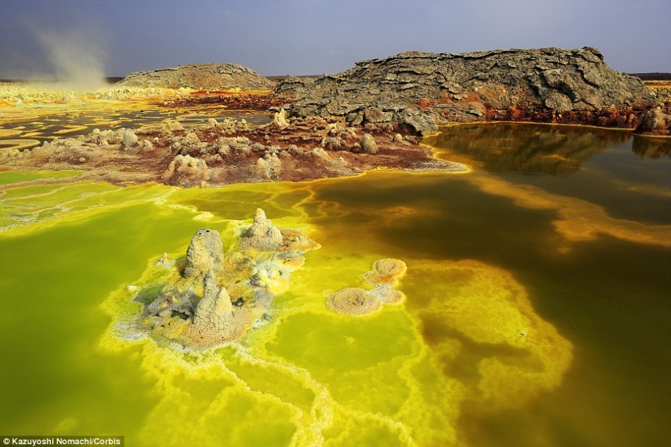 埃塞俄比亚达罗尔热液区就好像是一支巨大的彩笔在月球上爆炸,形成了令人难以置信的荧光色图案。这些火山口位于埃塞俄比亚达纳吉尔凹地埃尔塔-阿勒山脉的东北部,是世界上海拔最低的陆地火山口,这里也是世界上最酷热、最荒芜的地区之一。
