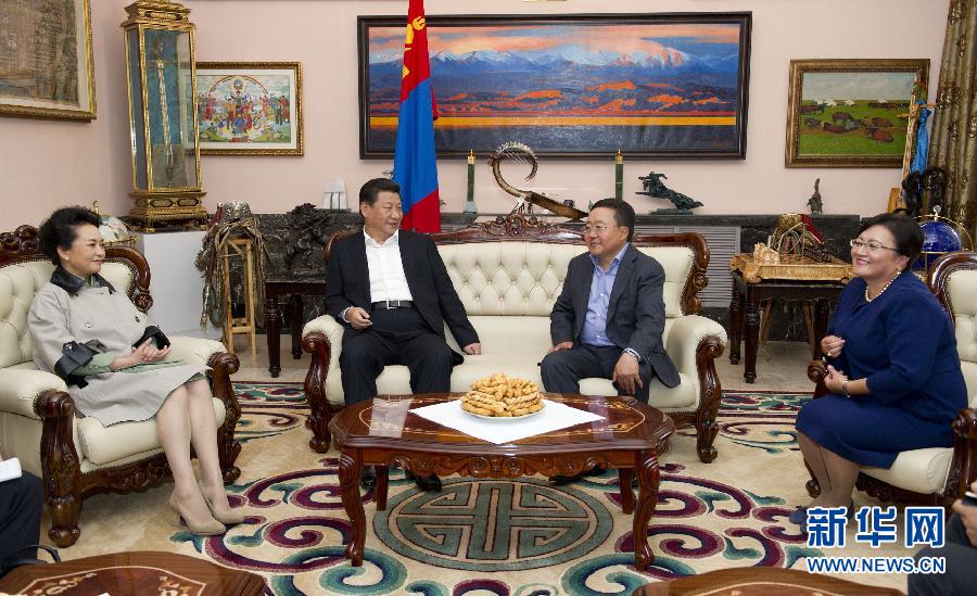 中午,习近平和夫人彭丽媛抵达位于乌兰巴托市郊的总统官邸,受到额勒贝格道尔吉总统夫妇热情迎接。两国元首在亲密友好的气氛中就发展中蒙关系及共同关心的重大问题进一步交换意见。