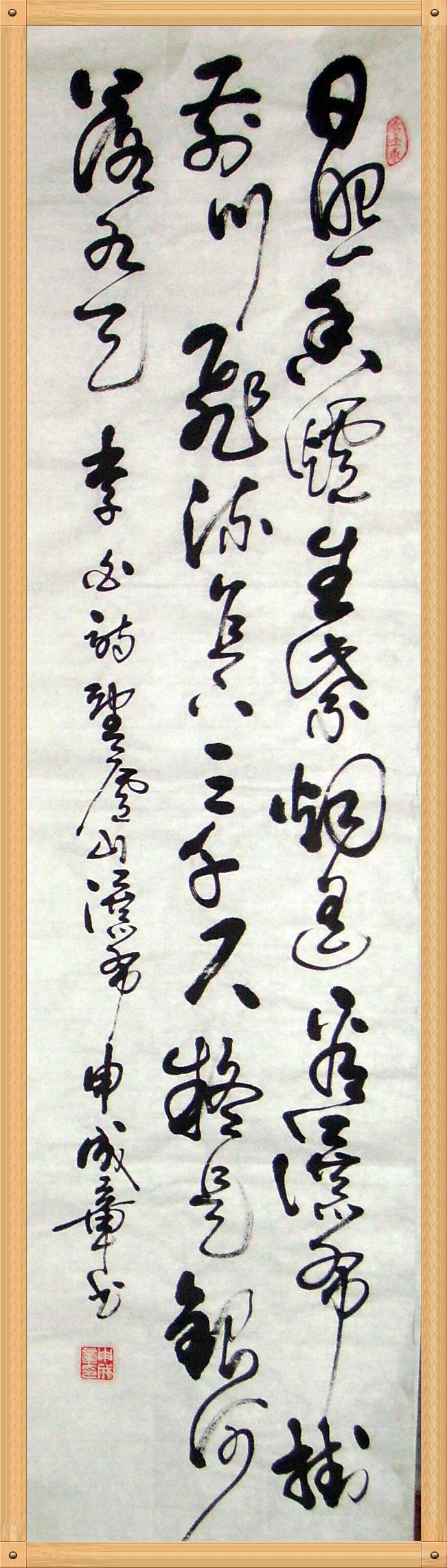 申成章,字子焕,笔名天石,1937年生于山西省交城县,现任中国书协山西分会会员、新加坡新神州艺术院高级书法师、高级荣誉顾问及高级名誉院士,日本国际书画协会会员、中国老年书画艺术编辑部理事。被誉为“世界杰出华人书法艺术家”