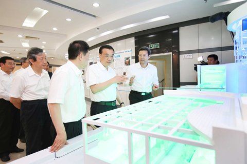 在我国自主设计的第三代核电机组“华龙一号”模型前,李克强详细了解目前最新研发生产的进展情况。他尤其关心国内企业联合研发的核电技术堆芯是否使用同一标准,因为核电要“走出去”,标准首先要统一,“五个指头攥成拳才更有力量”。