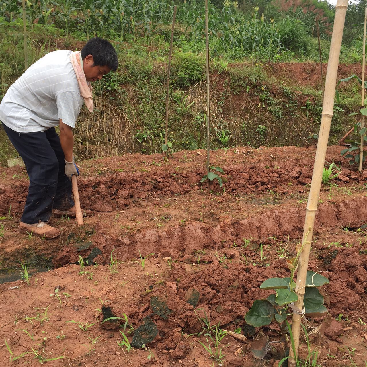 2015年6月20日,湖南慈利县,农民正在给红心猕猴桃幼苗挖排水沟。