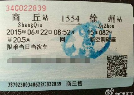 近几天,一张6月22日从商丘开往徐州的1554次列车火车票在网络上广泛传播。与目前较为普遍的火车票票面不同的是,新车票在始发站和到达站的站名后均标注上了“站”字,售票车站标注等信息的位置也发生了变化。