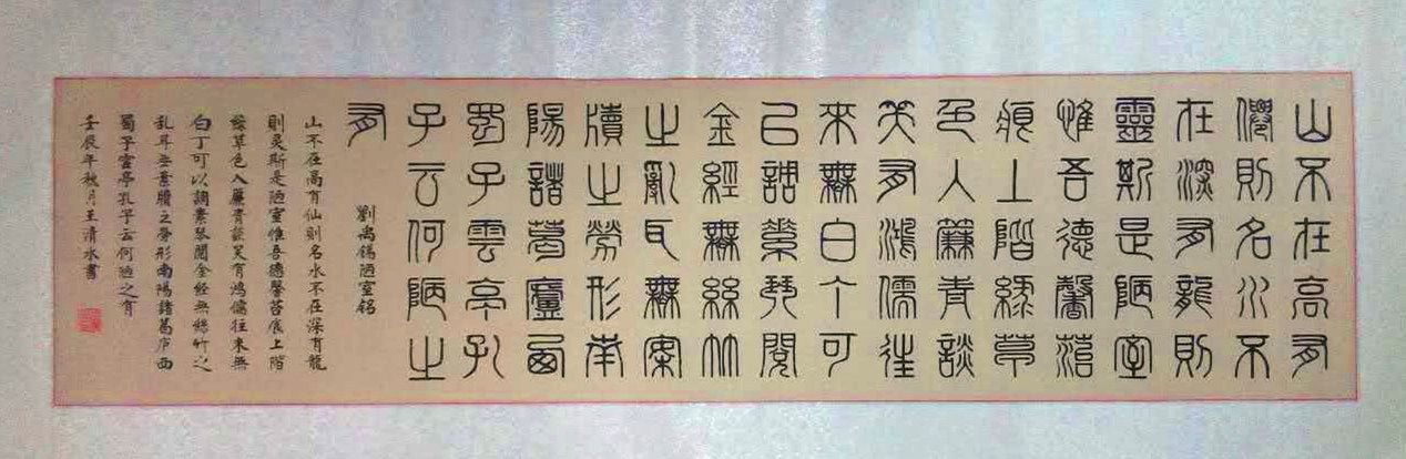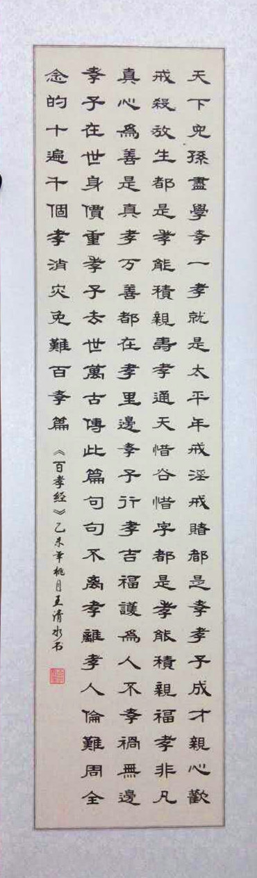 王清水,男,1943年8月29日出生于山西阳城,中共党员,髙级工程师,国土局退休干部,国家人事部中國书画人才研修中心特邀研究員;长江书画家协会名誉主席;唐伯虎书画研究院副院长;北京九洲枫林国际书画艺术院院士;王铎故里书画院名誉院长;中國书画名家协会会员。多年来参加全国及国际书法大展賽30多次,均获金奨。并授予“中华功勋艺坛名家”、“国际优秀书画家”、“中國世博书画名家”、“当代中國功勋艺术家”、“中华爱国书画名家”、“中國杰出红色艺术家”、“光辉历程-中國书画百杰”、“中國当代最具收藏价值书画家”等荣誉称号。