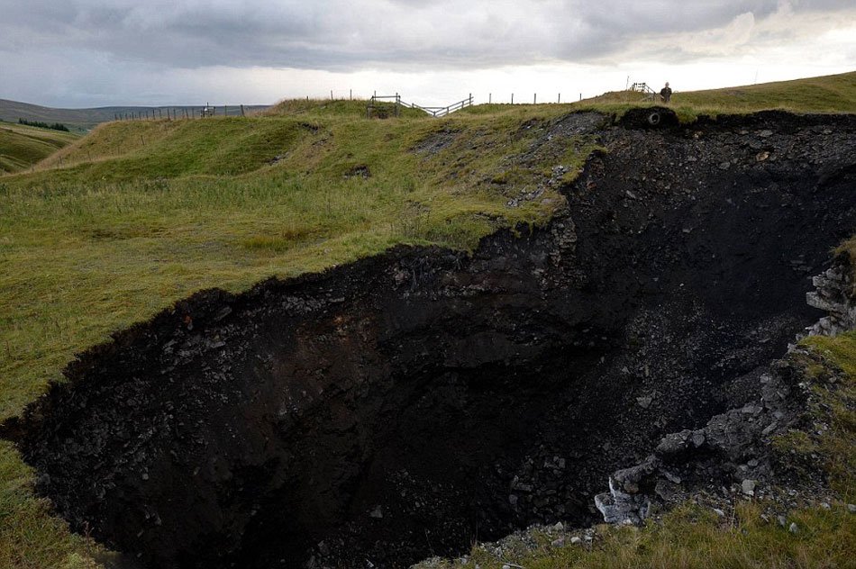 约翰认为这个大坑可能与19世纪的铸铁和铅矿开采业有关,但是没有证据证实这一说法。约翰说:“这片土地上时不时会出现一些小坑,但是以前从没见过这么大的坑,22日有专家来检查过这里,但是并未得出任何可以采取的措施。我们现在只能祈求这个已经接近人行横道宽的大坑不要再变大了。”约翰现今正从事增加本地鸟类数量的工作,他希望巨坑的出现不要对此带来不良影响。