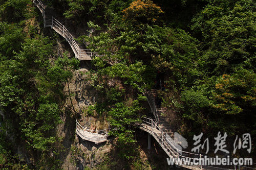 景区相关负责人说,景区游步道主要由8000米长的绝壁栈道构成,悬空栈道达6300米,属世界之最;景区地质景观奇特,空气清新,负氧离子密度每立方厘米平均高达8500个。预计7月14日开始对外试营业,票价150元,军人等特殊人群享受免票待遇。