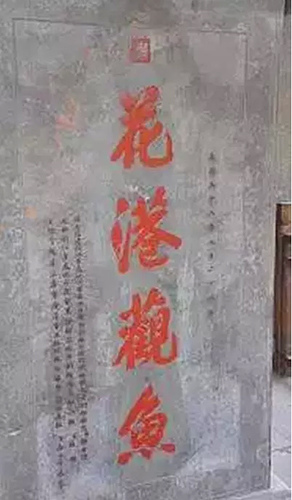 “花港观鱼”碑,也是康熙皇帝的御笔,“鱼”字少一点是“有意写错”。
