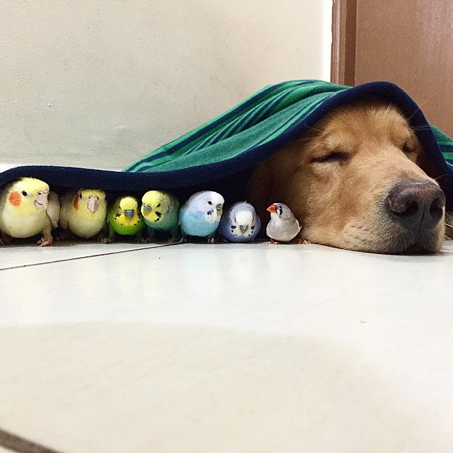 Bob是一只生活在巴西圣保罗的金毛犬,它异常的友善,能与八只鹦鹉和一只仓鼠交朋友,关系好到甚至时常黏在一起玩耍、打闹,十分讨人喜欢。
