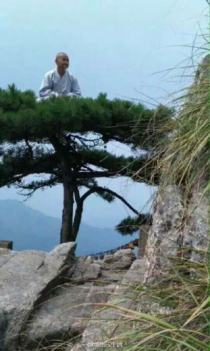 近日,九华山第33届庙会开幕,期间多名网友报料:庙会开始前一天的9月11日,九华山天台景区附近一名高僧竟然在一棵凤凰松树顶上盘腿打坐,引起了很多网友热议。