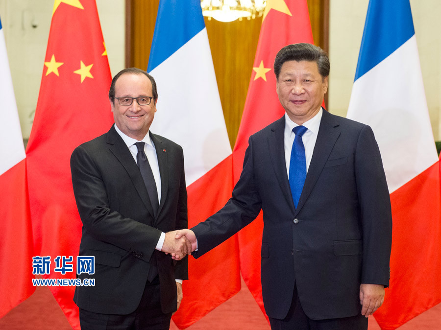 11月2日,国家主席习近平在北京人民大会堂同法国总统奥朗德举行会谈。这是法国总统弗朗索瓦·奥朗德专机抵达重庆开启他对中国的第二次国事访问。此次亦是奥朗德首次正式访问重庆,并有官方代表团、文化界人士、企业家随行。